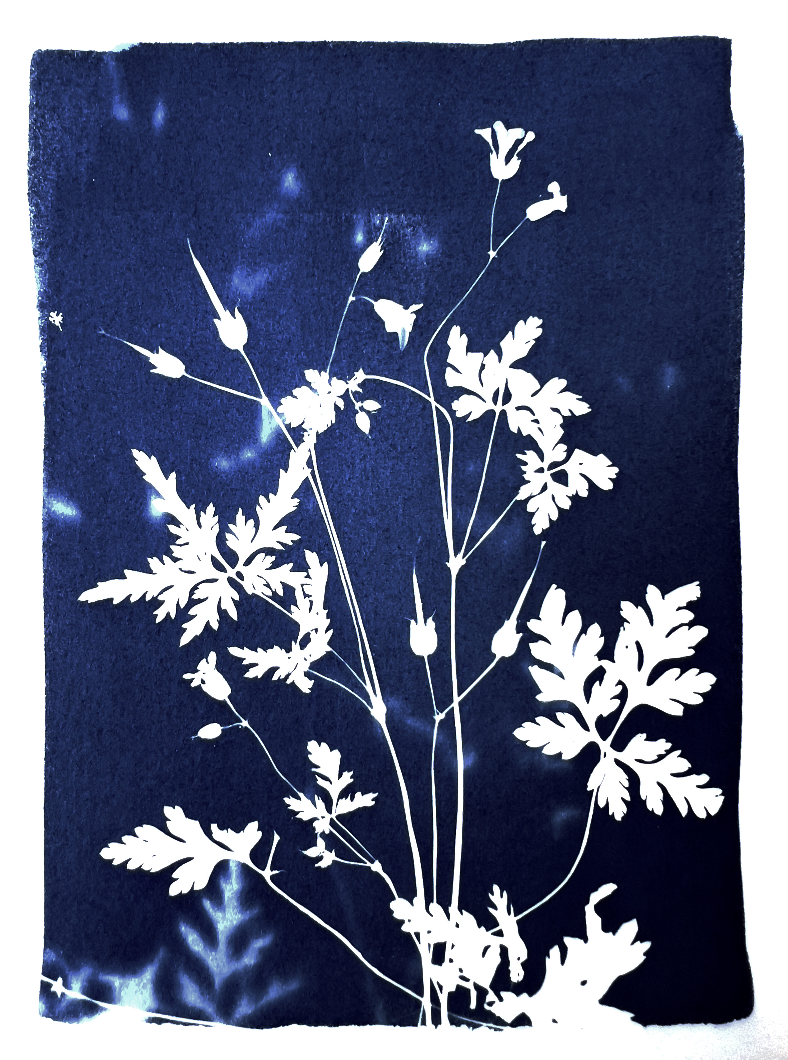 Die Cyanotypie-Technik erlaubt es, die feinen Strukturen und die stille Stärke dieser Pflanzen auf nachhaltige Weise sichtbar zu machen. Mit dieser Arbeit möchte ich nicht nur ihre ästhetische Seite betonen, sondern auch ihre ökologische Bedeutung ins Bewusstsein rücken.